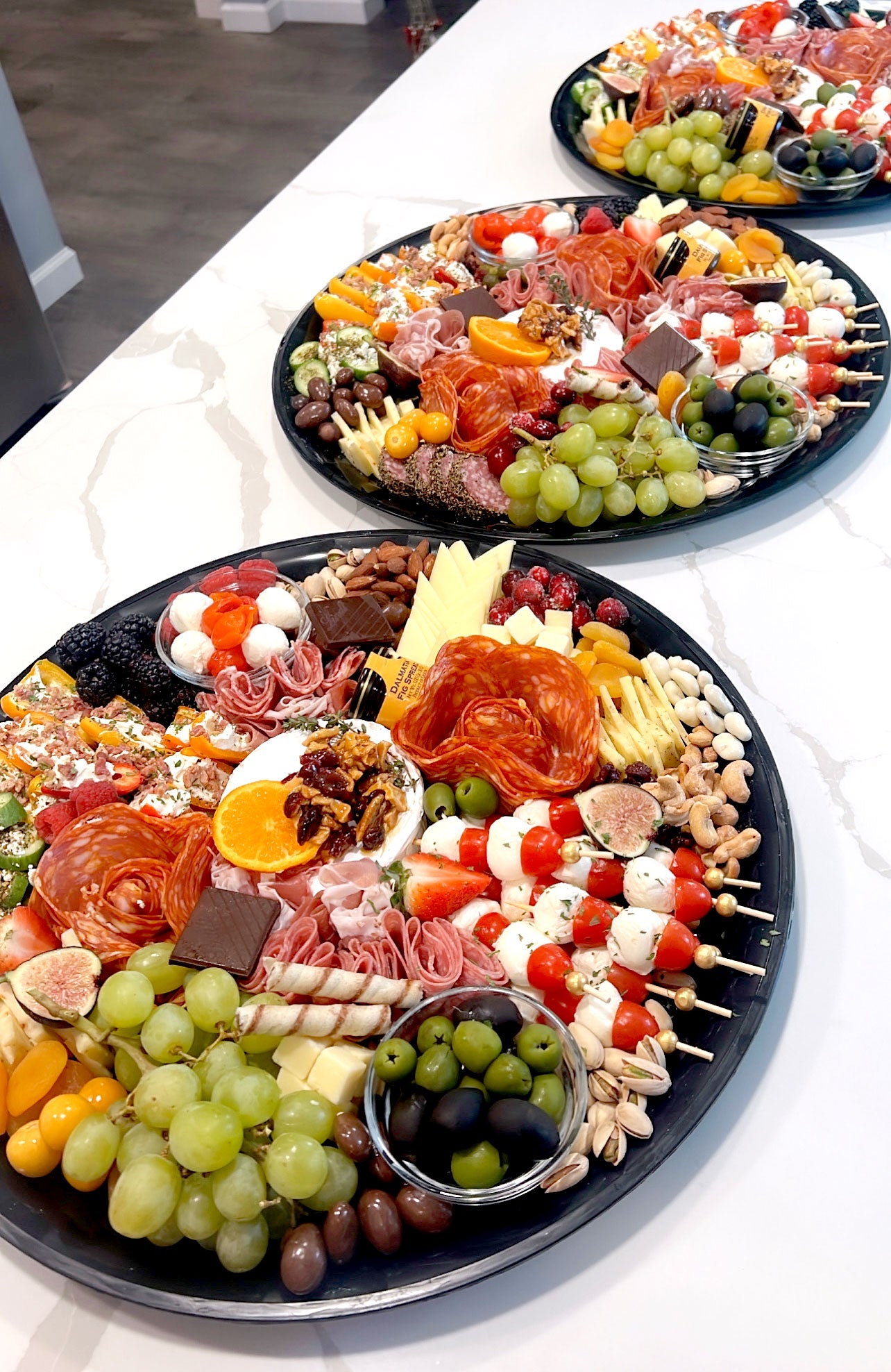 Dessert boards include: homemade biscotti, pizzelles and other assorted Italian cookies, gourmet chocolates, mixed seasonal fresh fruits, gourmet mixed nuts, honey & jams, fresh herbs, and a variety of specialty cheeses.